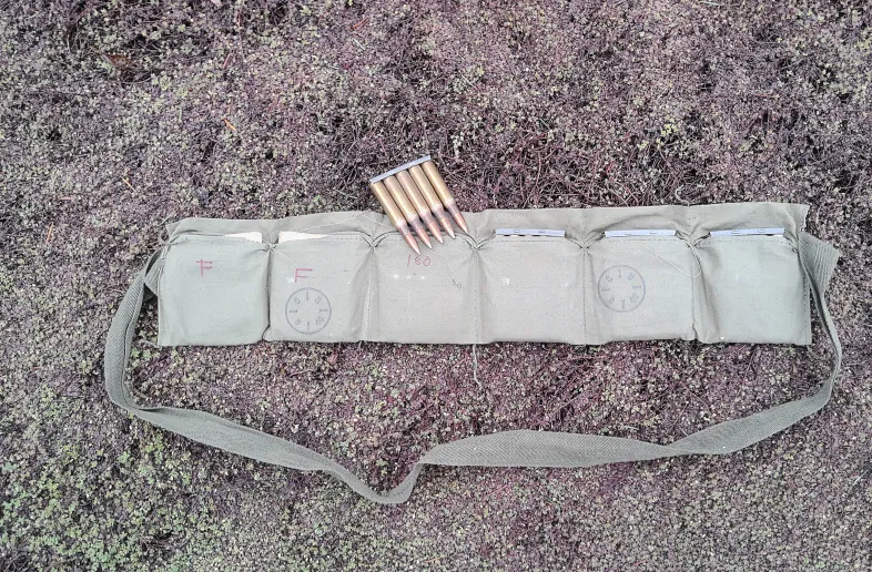 Military Ammo Pouch Holding Six Stripper Clips And 30 Rounds Of .30-06 Ammunition