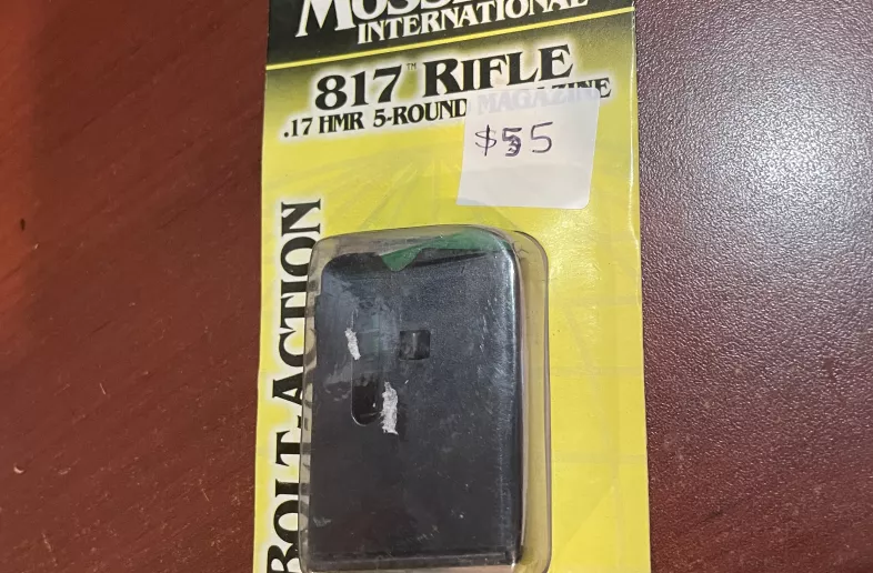 MOSSBERG MODEL 817 MAG FOR 17 HMR/ 22 MAG. 5 SHOT. NEW IN PACKAGE. NO TRADES. $55 PLUS SHIPPING. CHECK OUT MY OTHER ADS.
