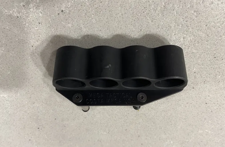 For sale is an excellent condition Mesa Tactical 4 shot, right side carrier for a Remington 870 in 12ga.