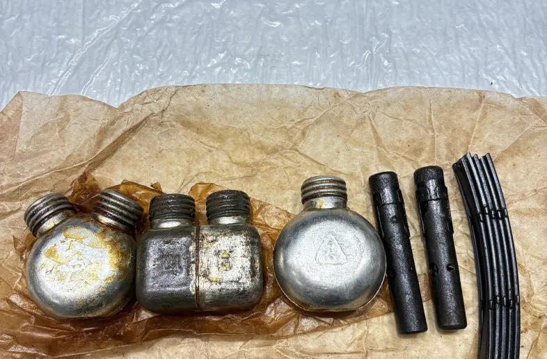 The original Russian SKS accessories: Oil bottles, Ammo pouches, Cleaning tool kits, Oil bottle bags, Ammo clips. Most of oil bottles, clips and cleaning tool kits are in heavy grease.