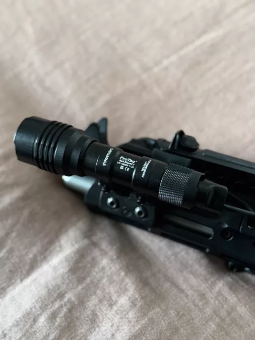 Streamlight Pro Tac scout light, model 88058, 350 lumens, dual fuel. Comes with a brand new battery. Never seen the range. Included are all the accessories that came with it: picatinny mount, M-lok mount, switch and switch mount, tape, even the zip ties.