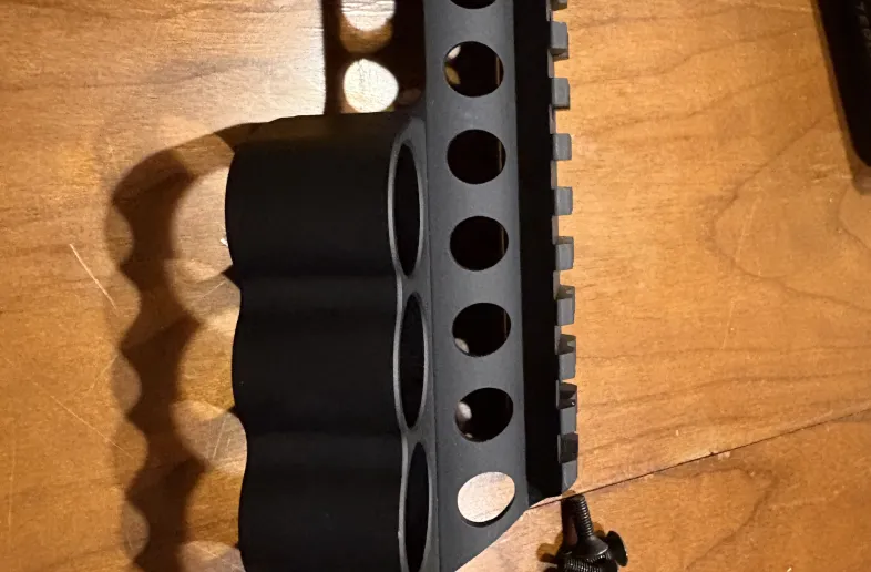 Mesa Tactical Rail with side saddle shell holder. Installed briefly, never used. This is aluminum not polymer. Has integrated top Picatinny rail