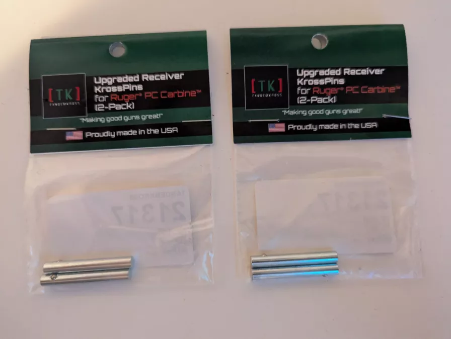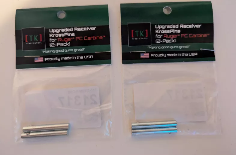 I purchased two 2-packs of these upgraded trigger receiver pins for my 10/22 but accidentally ordered the Ruger PC Carbine one which is a little longer than the 10/22 pin.