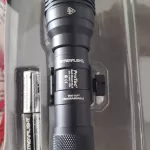 New Unit. Great light and will come with 2 cr123As (I may be able to find a panasonic 18650 instead).