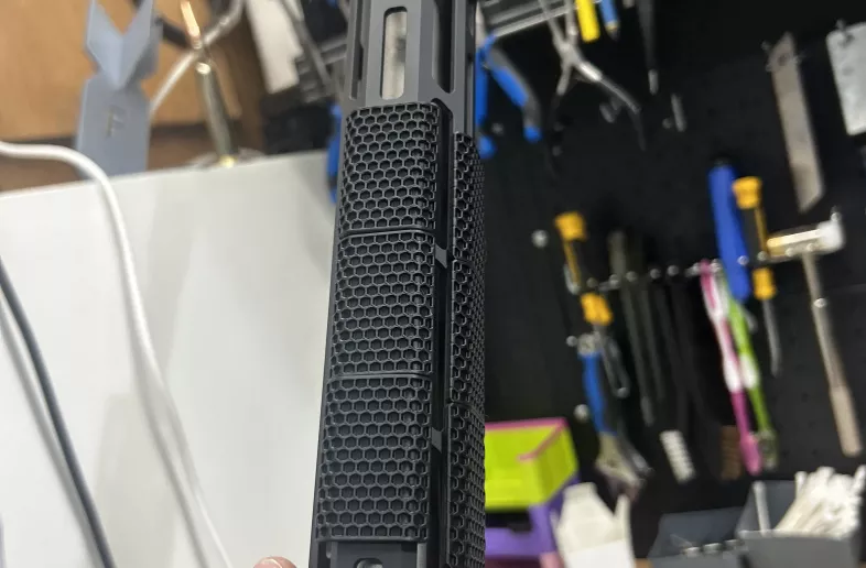 These rails are generally printed in a carbon fibre infused material to add durability and strength needed to maintain quality, at this time only black and burgundy/red are available for colour selection. other colours can be printed, but please be aware the product may not hold up to abuse.