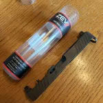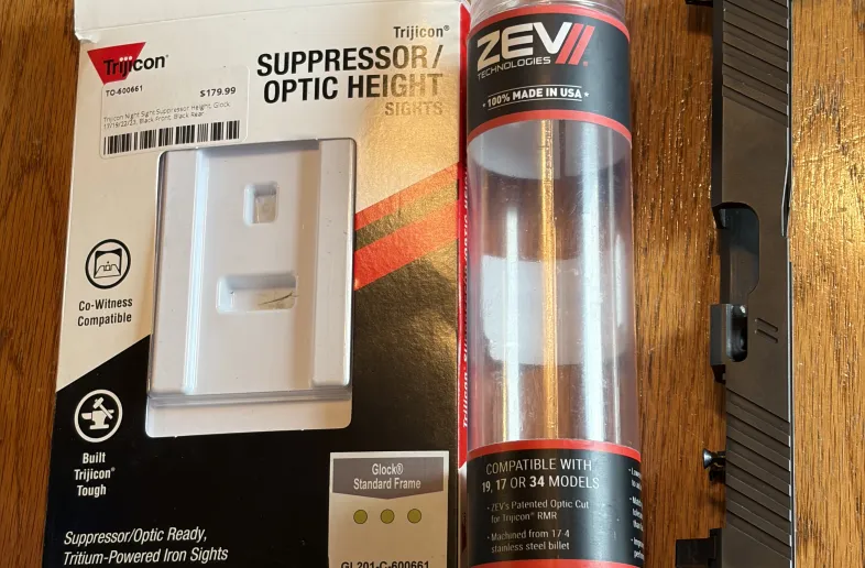 Lightly used ZEV Glock 17 Gen5 slide with RMR optic cut. Includes Trijicon glow in the dark suppressor height sights installed. Minimal wear as shown in photos. Slide is stripped comes with no internal parts.