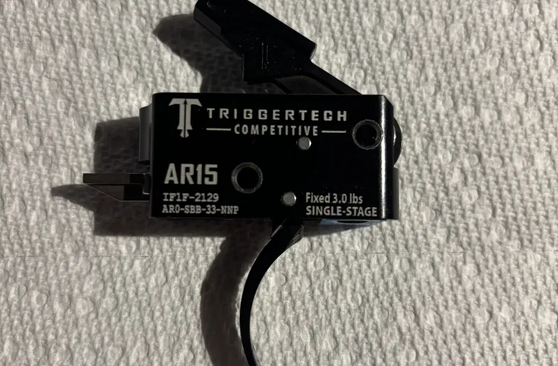 AR-15 Pattern “Competitive” Triggertech trigger. Single stage. Fixed 3lb pull weight. Feels wonderful just like all Triggertech’s.