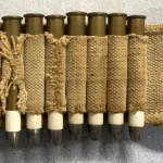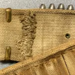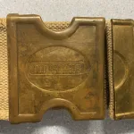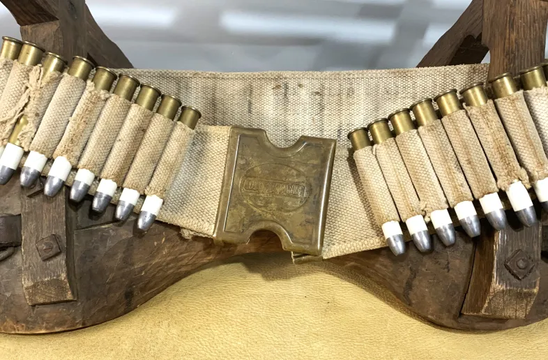 Now that I'm in my late 70's , I am downsizing my antique gun and militaria collection to move into a much smaller house with a much smaller gunroom.......offering an original 1880's Mills pattern , woven ammo belt with a rare 1881 Patent Mills/Orndorff brass buckle and retainer. The loops hold .40 to .45 caliber rounds and included are twenty .44-90 Sharps bottleneck cartridges. Please view the photos closely as the belt has been well used and has some damaged loops and earlier field repairs.....I have always refrained from doing any repairs or "enhancements" to my original antiques as the wear and tear is a natural part of its history and character. The cartridges are not original but are repro brass which was purchased about 45 years ago and which I loaded with black powder and some very old primers which were purchased about 50 years ago ( used for display purposes only ). The belt and attached buckle were purchased by me in 1967 at an Ohio gun show. The brass buckle has that beautiful patina which only time can create and it does have a few dents from honest wear and tear.....contact me if you interested and need more photos, or different angles, as the website only allows 10 photos. This is a rarely encountered ensemble. I am willing to ship at "BUYER'S EXPENSE" but it will need to be by a trackable and insured method, or I offer local pick up --- OF COURSE I CANNOT SHIP THE BLACK POWDER CARTRIDGES WITHOUT REMOVING THE POWDER AS THEY ARE CLASSED AS EXPLOSIVES.......THIS COULD BE POSSIBLE AS I HAVE NEVER CRIMPED MY SHARPS CARTRIDGE RELOADS WITH PAPER PATCHED BULLETS. I am also in Red Deer one day per week and can arrange to meet there, or enroute, for delivery.
