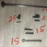 See pictures for small parts pricing. Spring pin with magazine latch is cracked. Stock set sells complete as in pictures for $140. Receiver parts are sold, only stock set left. Shipping costs are at the buyer’s preference and cost.