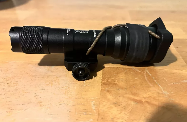 Streamlight ProTac Rail Mount HL-X in black.  Picatinny mount, and comes with One Hundred Concepts light cover.  Works very well and has excellent illumination and flood.  In excellent condition with the only wear being on the nut used to tighten the light onto the rail.