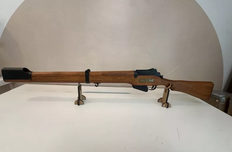 Swift Training Rifle S.R. Mk. III (brass plate: “THE SWIFT TRAINING RIFLE 9B/2030 S.R. MK. III 12921”). Used for wartime training during ammo shortages. Excellent display/collector piece.