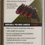 SureShell shotshell carrier available in six-shell configuration that can be installed on the left side of the receiver. Carriers can also be installed pointed back toward the stock.