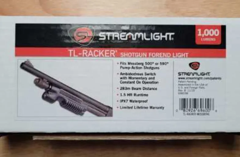 New Streamlight 69600 TL-Racker Forend Tactical Light with CR123A Lithium Batteries - 1000 Lumens pump handles for the Mossberg 500-590 for 7-3/4" action, can work on a Maverick 88 with added parts $250 + Shipping