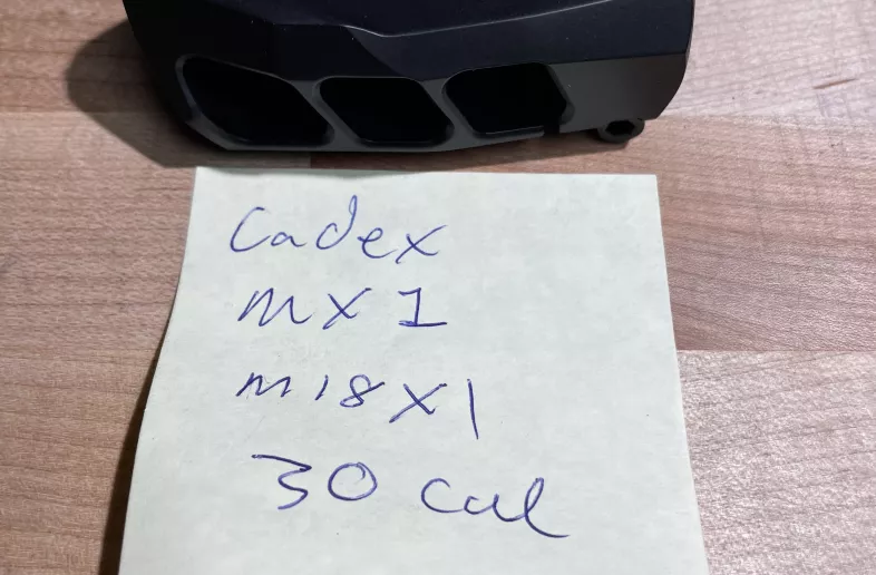 Up for sale is a Cadex MX1 muzzle brake, M18x1 thread, 30 cal.