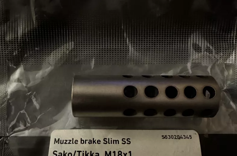 New Sako/ Tikka M18 X 1 metric muzzle brake stainless steel. For 30 cal models.