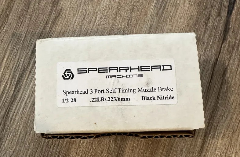 I’m selling my new self timing Spearhead 3 port 1/2-28 22/6mm cal. Muzzle brake. It’s Black Nitride. Asking $200. Thanks