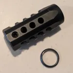 Christensen Arms side baffle brake, up to .30 cal. 5/8x24. .920 at thread end. Could use a new washer.