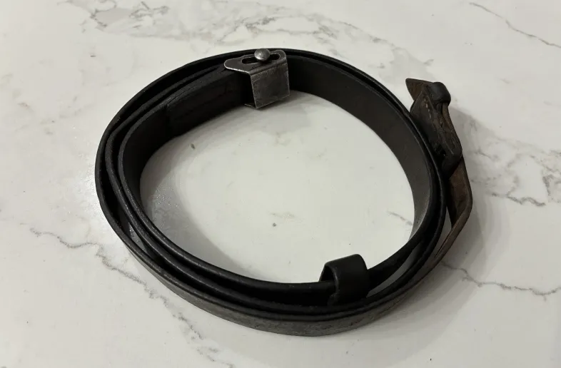 Up for grabs from my personal collection is a beautiful all original K98k rifle sling from WW2. I'll let the pictures do most of the talking. These original slings are getting harder and harder to find, especially in serviceable condition. This sling has a faint makers mark on the buckle and the ricasso pattern is also there but faint as well. The sling leather is amazingly supple for its age and completely serviceable. This is a fully useable wartime sling for the K98k owners out there and would make a nice authentic addition to any collection.