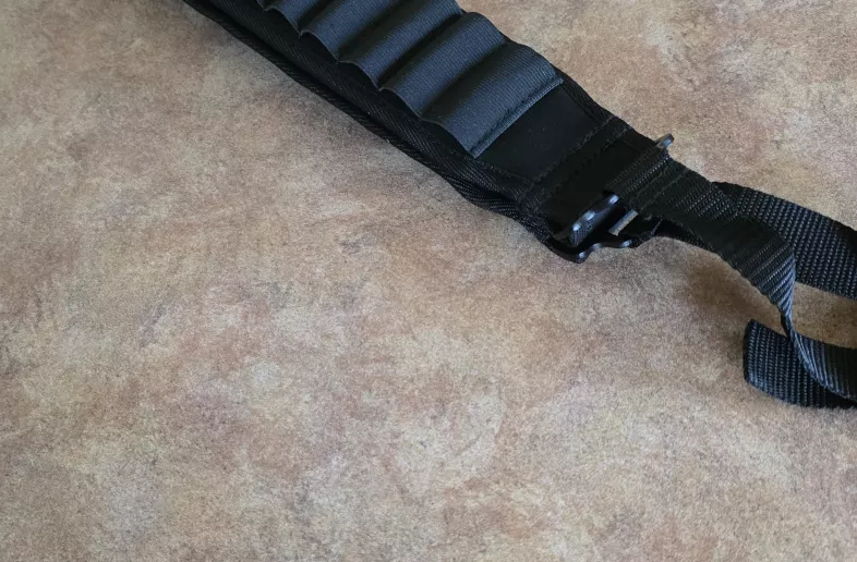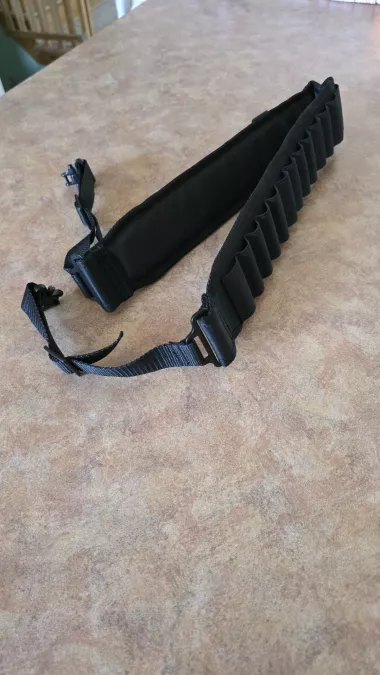 Listing a black shotgun sling which can hold 25 shotshell in 12G.