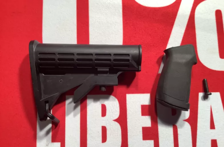 Selling an AR buttstock and grip with mounting bolt and grip plug. Both black.