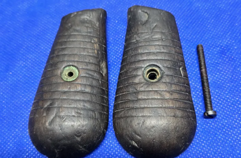 Set of original well worn grips from Mauser broomhandle pistol. Solid and mounting screw included. 40.00. Shipping available as letter mail for 3.50. No tracking.