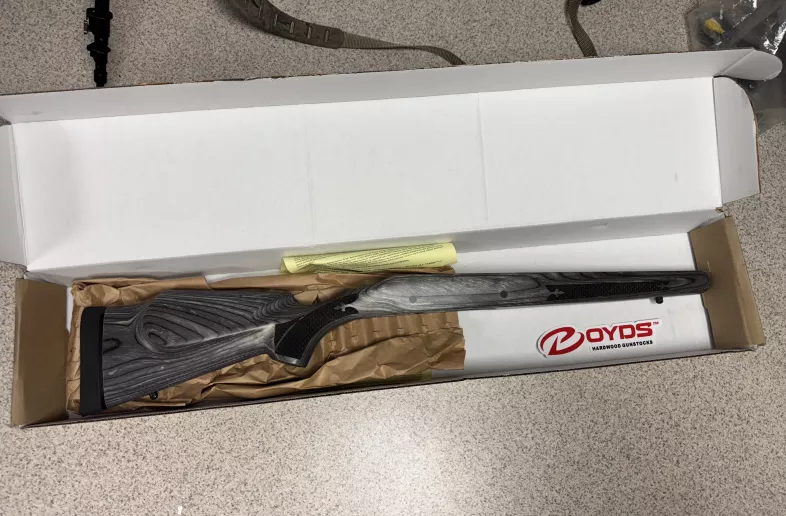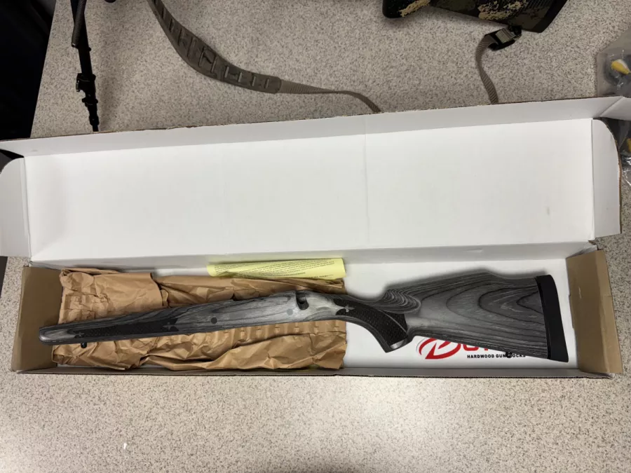 I have a brand new Boyd’s stock never been used for left hand Remington short action with the hinged floor plate style bottom metal.