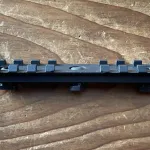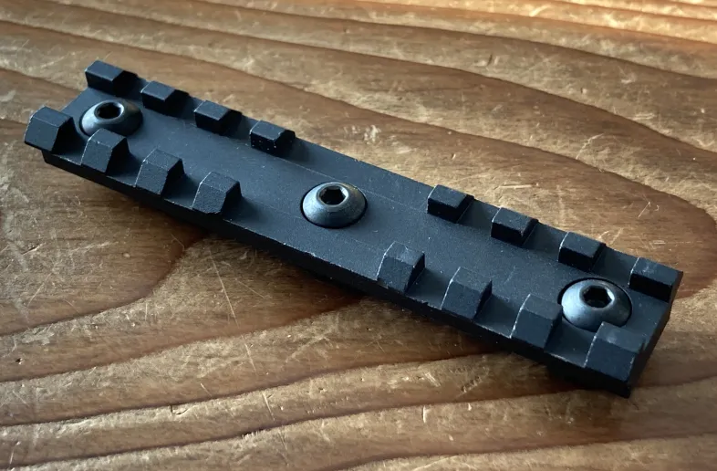 Aluminum M-LOK Picatinny rail that's 3.75" long with two 3-slot sections; one at each end. In very good used condition with only light signs of wear. Attaches securely. No problems, just decluttering stuff I'm not using.
