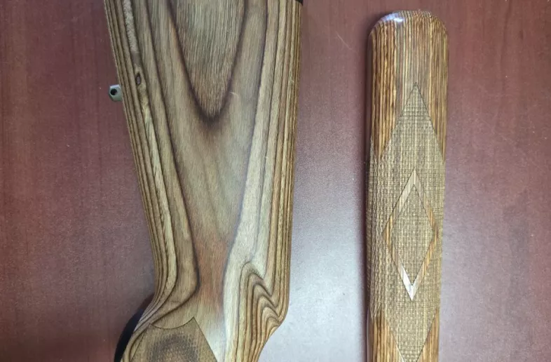 - Material: Quality hardwood with factory checkering and diamond pattern
