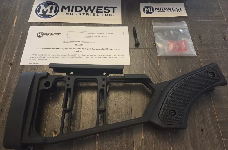 Brand New Midwest Industries Stock for Henry Homesteader. Fitted it, tested it, and decided I like the walnut stock more. Ships in original box with all components.