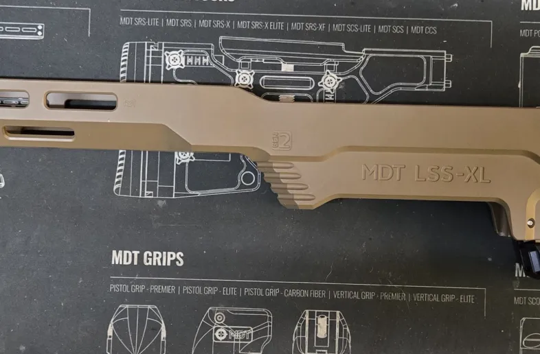 Mdt lds xl gen 2 for Remington 700 long action 3.715" magazine. Recoil lug and front of receiver area has been marine tex bedded. Easily removed if need be. Chassis was bedded for KS LAR 3 lug.