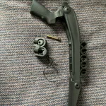 ATI brand folding stock for Mossberg 500/ Mav 88 with adapters for Win 1200 or Rem 870 shotguns. Does not fit to win Spx shotguns. Includes 5 rnd shell holder as seen in photos, along with replacement hex bolt for Mossberg receivers. Sling stud on pivoting butt plate pin, reversible. Shipping on buyer, will meet for F2F transactions. Item is used, with some slight scratches and rub marks. Buying new costs about 150$. I can throw in replacement oem stock for Mossberg Maverick shotguns, the butt pad is exceptionally hard.