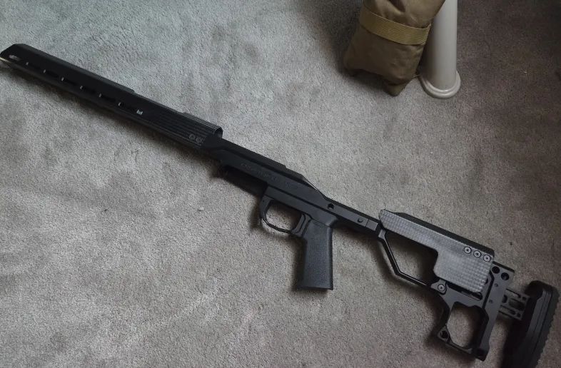 For sale is a Christensen Arms MPR chassis for Remington700 SA. Has been modified to allow scope sunshade. Grip for pics only.