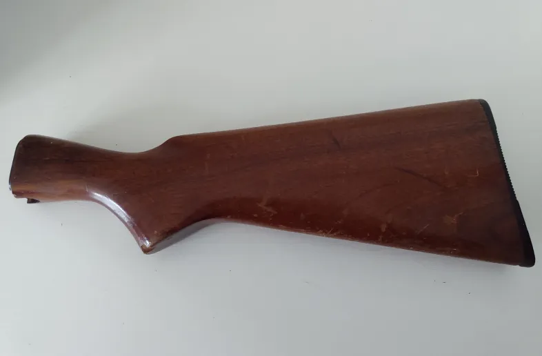 Remington 870 Buttstock (cracked) with butt plate, screws & stock bolt (stored inside). See pics for crack on the wrist. Can be repaired & refinished nicely with glass epoxy.