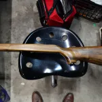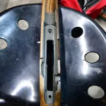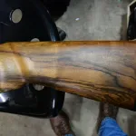 I can find no gauges or scratches on the stock. It would seem someone refinished it as it is flawless. The little streak seen on the right hand butt section is not a scratch, it is some kind of varnish streak.