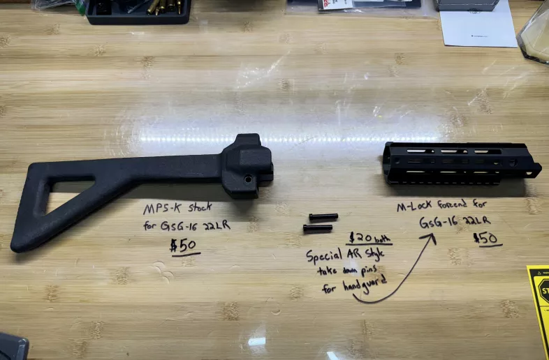 Selling my mp5-k gsg16 kit I never installed it sold the rifle before I installed and forgot I had these under my bed. My loss is your gain no need for the parts. Good quality 3d printing from a company in Canada. Direct bolt up the ar style line work directly with the forgrip. I was told from the man before me the stock pins don’t work to well and you want to upgrade to these making the job 3x easier so don’t cheap out and just grab the forgrip without the pins 👍