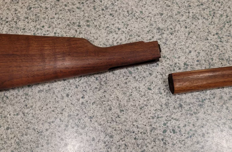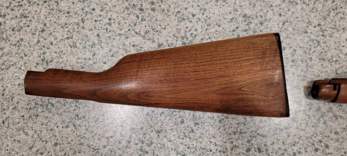 Ithaca model 72 furniture. Good original shape and finish. I believe it will fit the Henry H001 as well.