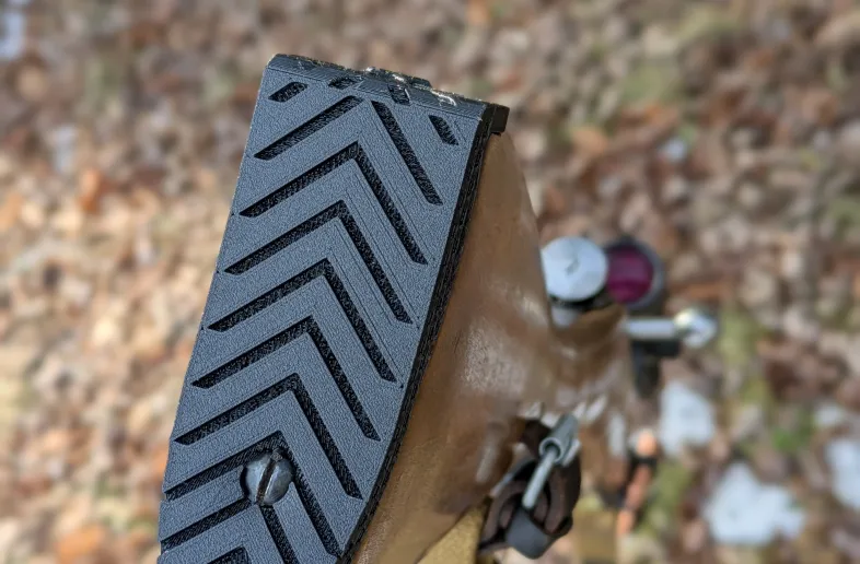 Made of a hard TPU material, this butt-plate replacement increases shoulder-grip and reduces some of the felt recoil. You can also now stand your rifle up in a corner without it falling on the floor, my personal favourite feature.