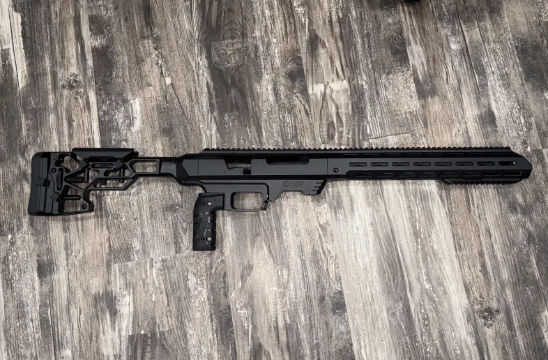 mdt tac 21 chassis complete, excellent shape, tikka right hand short action,