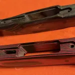 Stock “B” is a red and black laminate thumb hole stock (Right Handed) in very good condition, with some minor marks, and a spot of flaked finish near the heel of the pistol grip. This stock is made for rifles with flat bottom metal and WILL NOT fit P14/P17 rifles with curved bottom metal. $225 FIRM PLUS SHIP