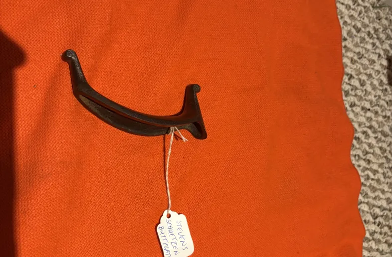 NO TRADES PLEASE. I believe this to be an early Stevens .22 buttplate from one of the “Shuetzen” style from the turn of the century. Appears to be cast and is numbered “870” on the underside. Hole spacing is about 2 1/4 inches centre to centre. Nice addition to a vintage boys rifle. $40 FIRM PLUS SHIP. (Shipping is $21 flat rate box through C Post)