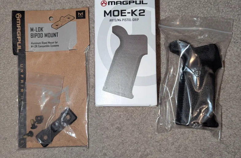 Brand new magpul k2 grip, mlok bipod Mount and 3d printed mlok AFG