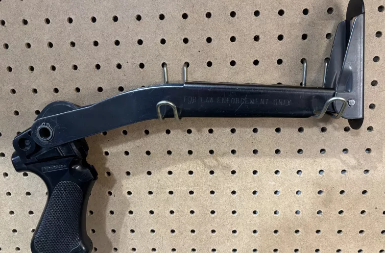 Up for sale is a “Law Enforcement Only” top folding stock for a Remington 870. In good solid condition. Some safe kisses. New spring installed on butt plate hinge.