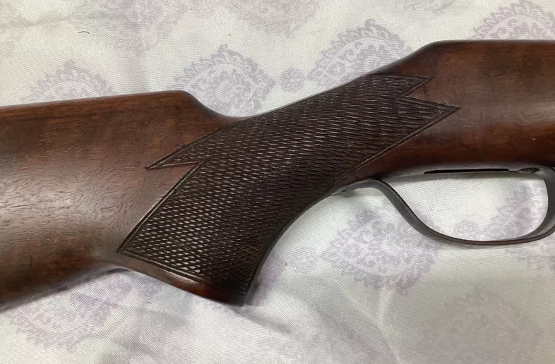 Here’s a nice stock to upgrade your tired old Cooey model 75, 78, or 82. Beautiful checkering on grip, forearm and buttplate. Comes complete with trigger guard, swivel studs and take down knob/bolt. Just drop in your action. Will ship anywhere in Canada, your cost.