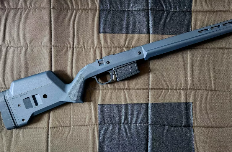 Comes with cheek risers, front and rear qd mounts and magwell kit