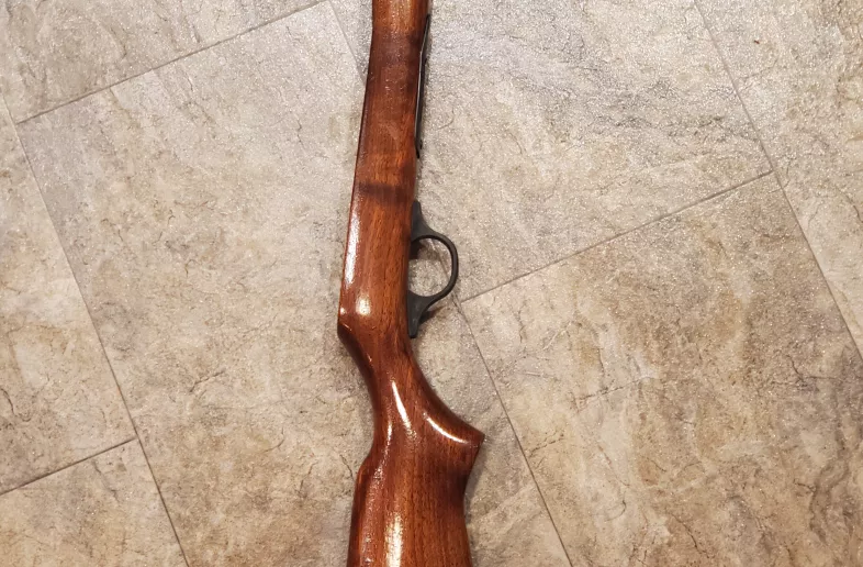 Early Cooey 64 wood stock with plastic magazine well. In very good condition.