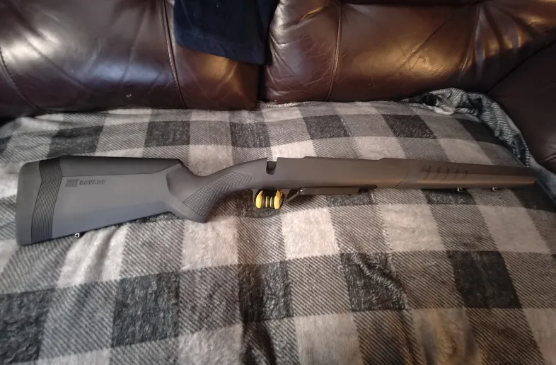 Accufit stock from a short action Savage 110 Tactical. AICS compatible bottom metal takes detachable box magazines from many manufacturers. Works with any side release action, will not work with bottom bolt release actions unless you want to delete the bolt stop altogether.