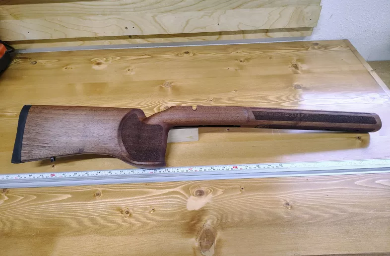 New rifle take off. Never been to the range and zero use. Walnut CZ 457 MTR stock predrilled for Area 419 ARCA rail ( "T" nuts installed). No bottom metal Sorry, sling swivels have been removed in order to correctly place the ARCA rail.