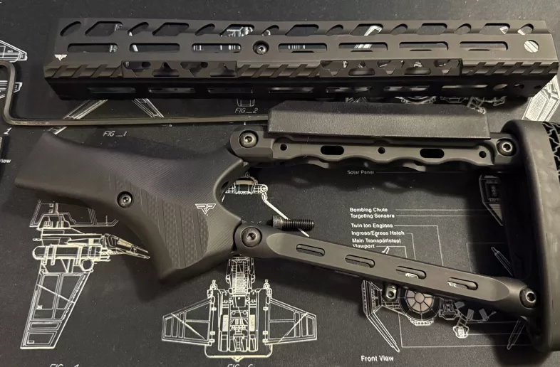 Barely used, mounted once. Stock and handguard combo.