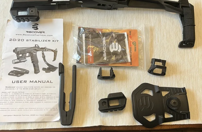 Recover Tactical 20/20 stabilizer kit for Glock pistol. Should work with most Glocks with the straight slide serrations. It won’t work on my glock 22 with the fish scale slide serrations