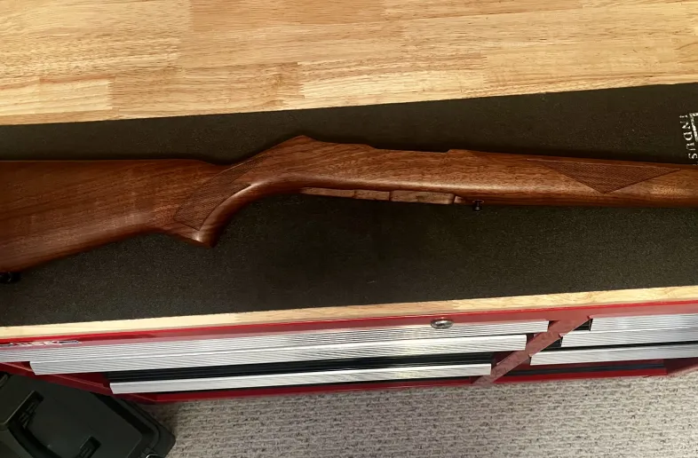 Brand new out of the box, walnut stock for Ruger 1022. Has never been used or carried. However did come out of the packaging with a minor dent at top of grip close to back and top of the receiver.